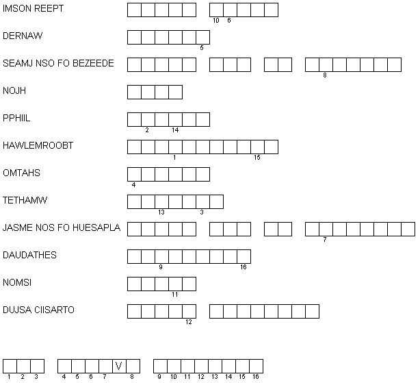 Unscramble the words. Copy the letters with numbers to the correct boxes at the bottom to decode the message.